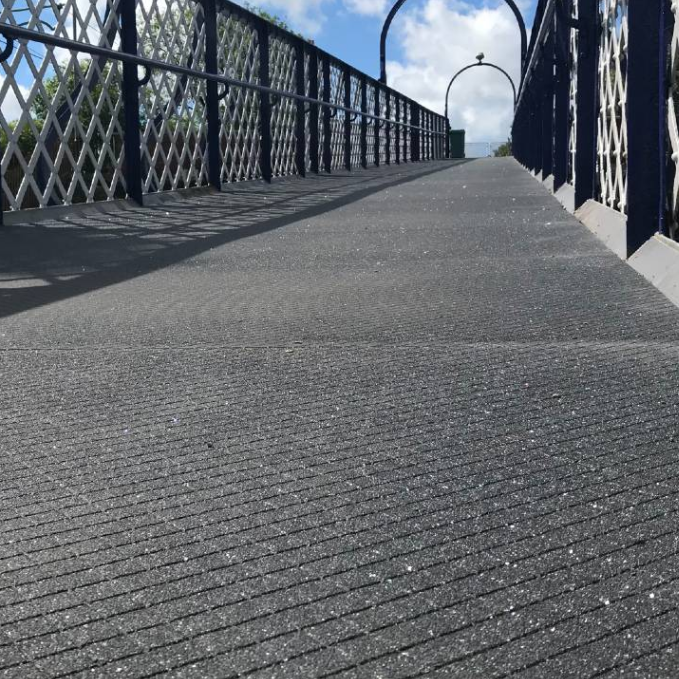 The GRP has a wood grain effect finish that comes in a range of colours to blend into the natural environment. This ensures a timber feel without the risk of splinters that occur on wooden bridges.